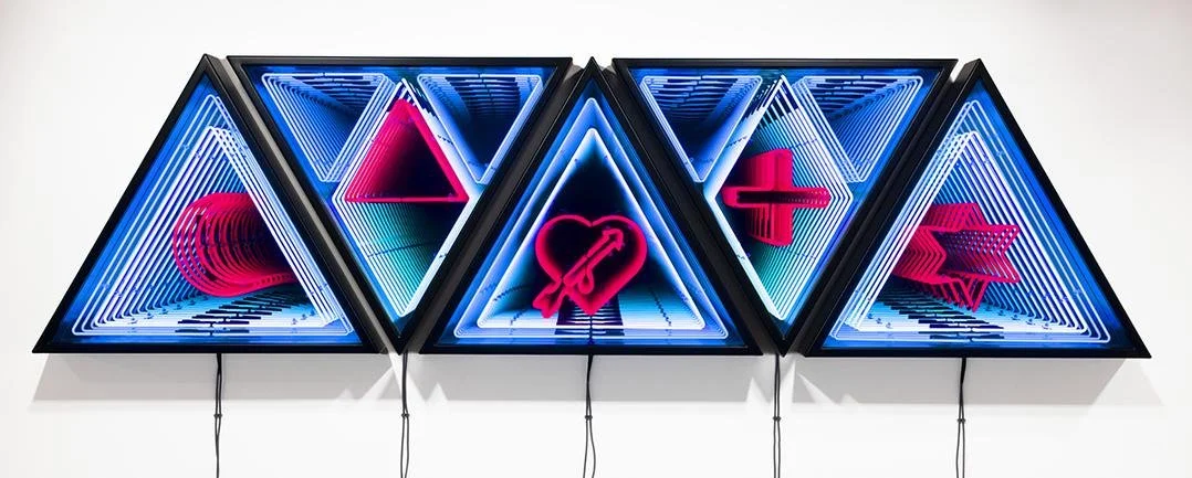A tribute to the Māori prophet Te Kooti Arikirangi Te Tūruki (1830–1893), Te Wepu MMXXIII repurposes symbols loaded with significance—the crescent moon, cross, mountain, bleeding heart, and star—alongside colours alluding to the Union Jack, to reinvigorate them as symbols of resistance within the neo-colonial present. Known for a practice that straddles design, illustration, animation, and sculpture, Jahnke’s work is typically based on political issues that face Māori, the relationship between Māori and European colonisers, and the impact of Christianity on Māori culture.